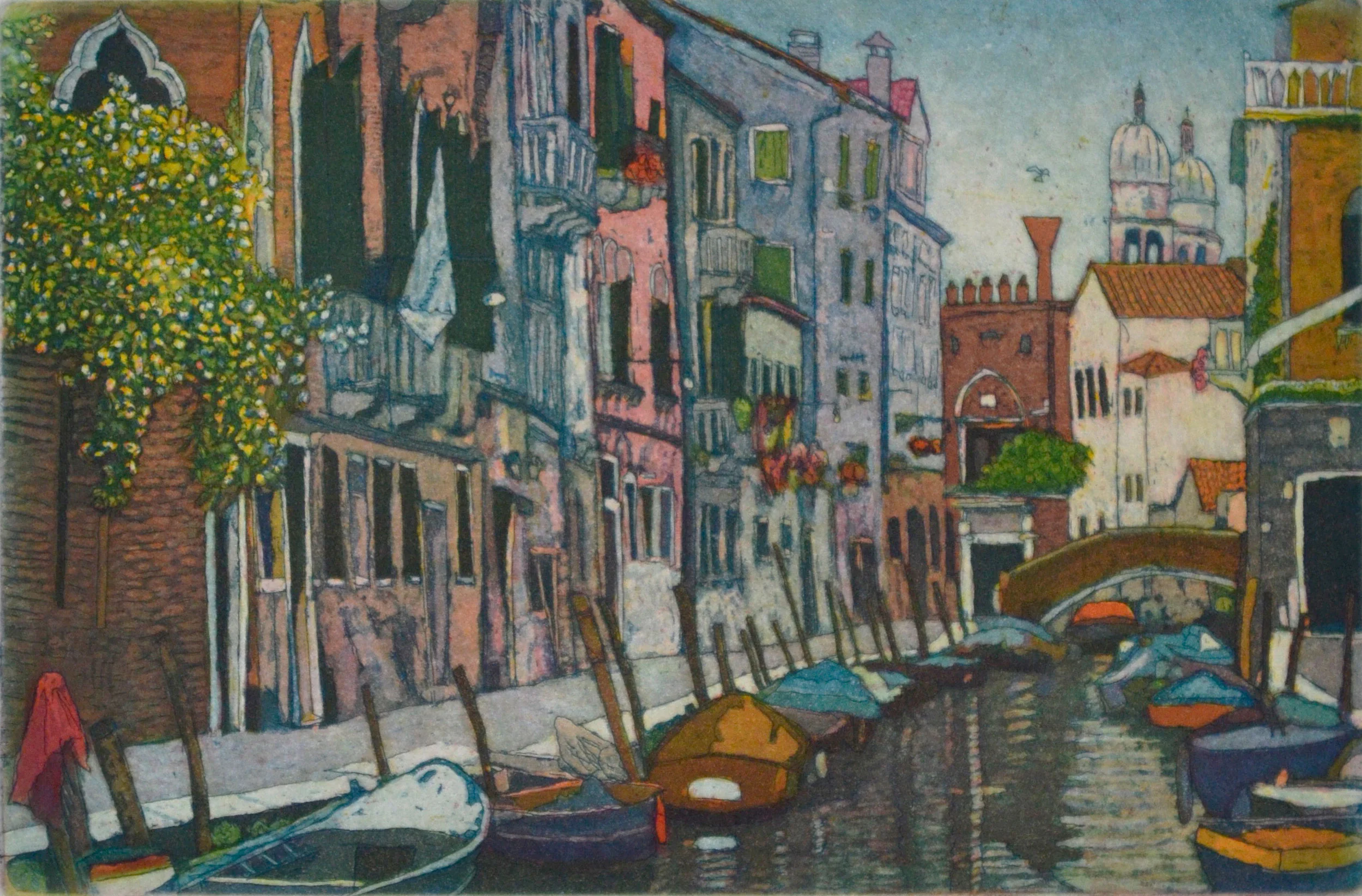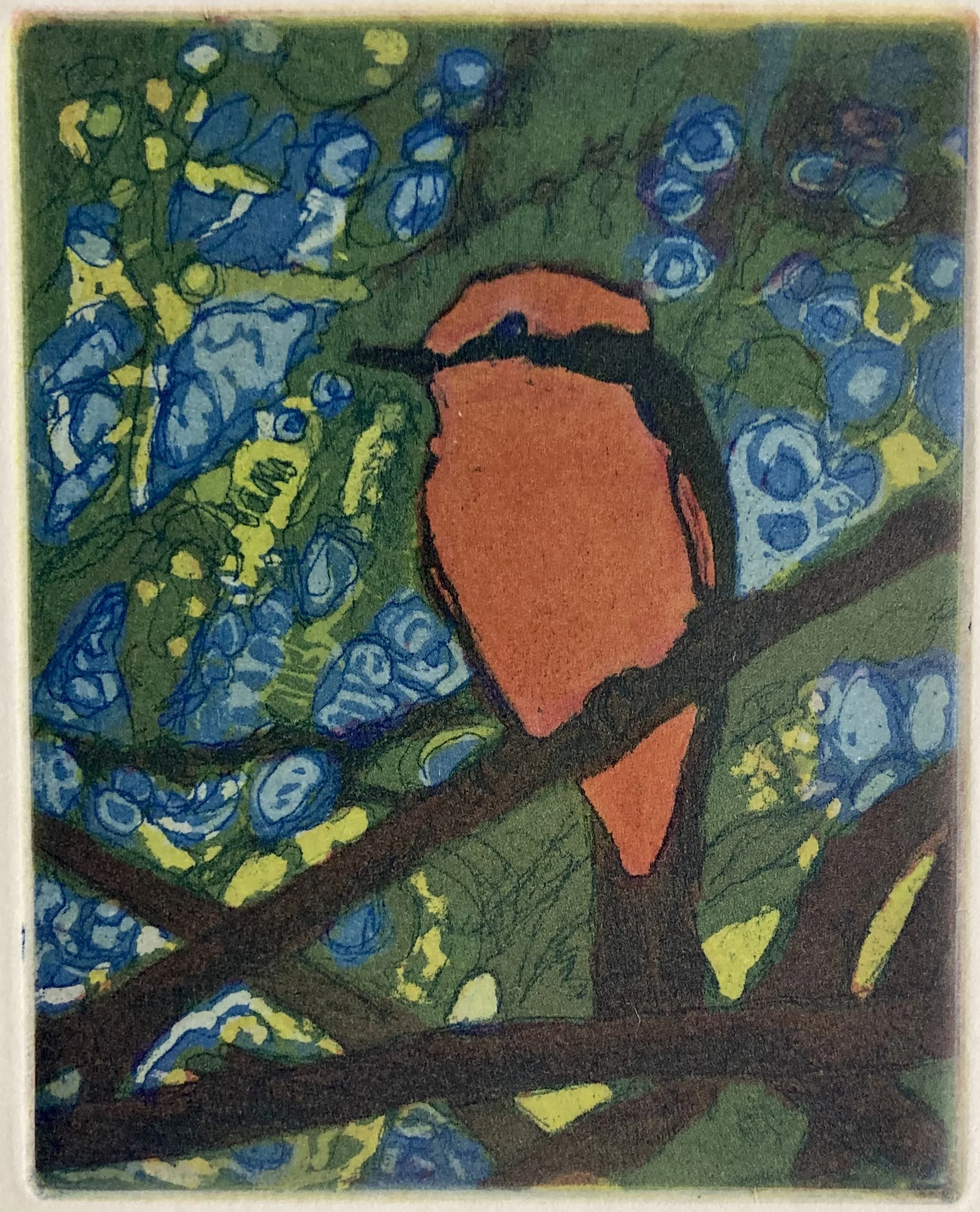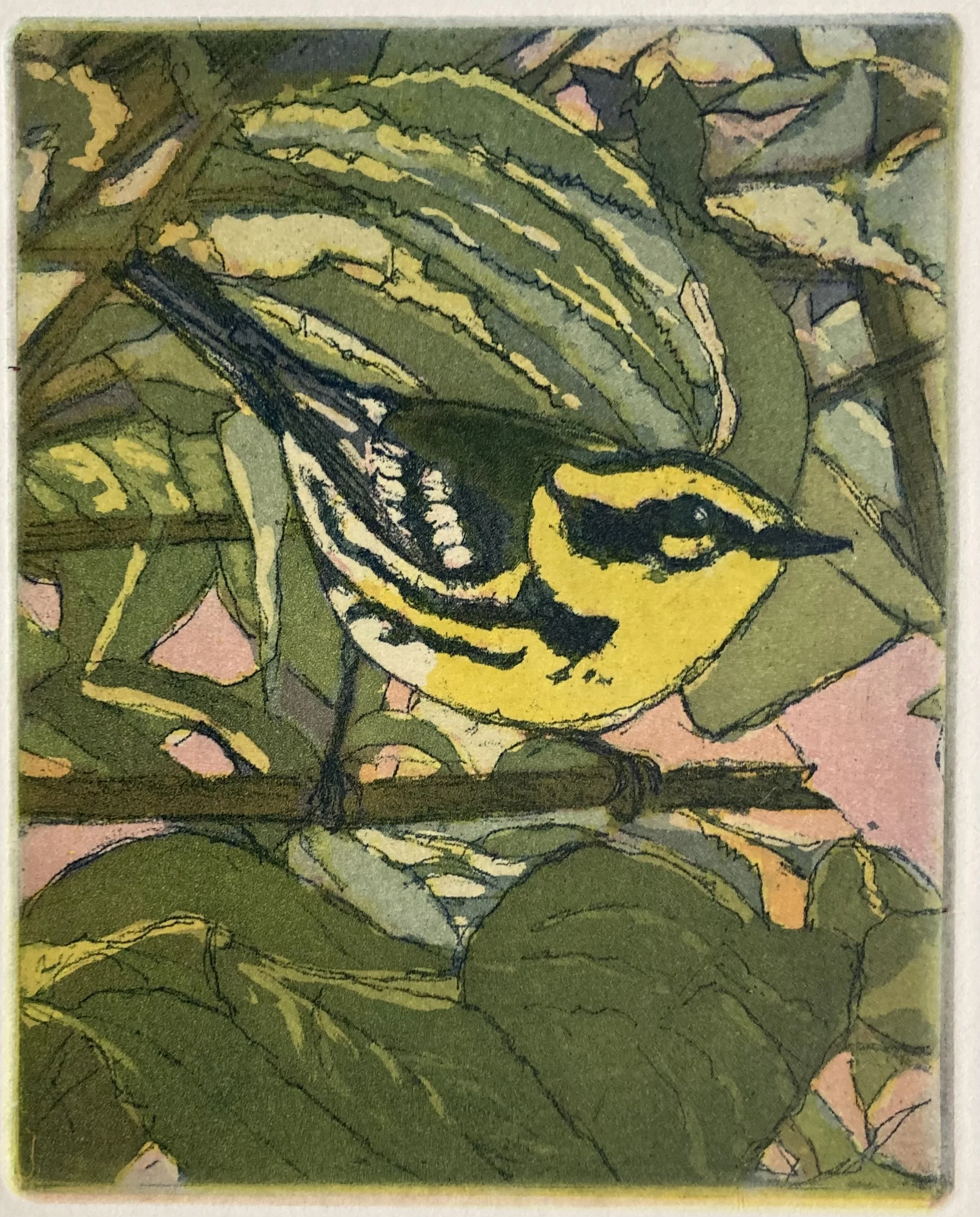 Toney's etchings are known for their rich diversity of color achieved by a multiple plate color etching process. The larger work, mostly diptychs and triptychs, juxtaposes natural and manmade images inspired by her environment. Other etchings chronicle her travels to France, Germany, Holland, Italy, and Switzerland. With colorful detail, she focuses on recreating a certain mood or moment both in and out of her home.